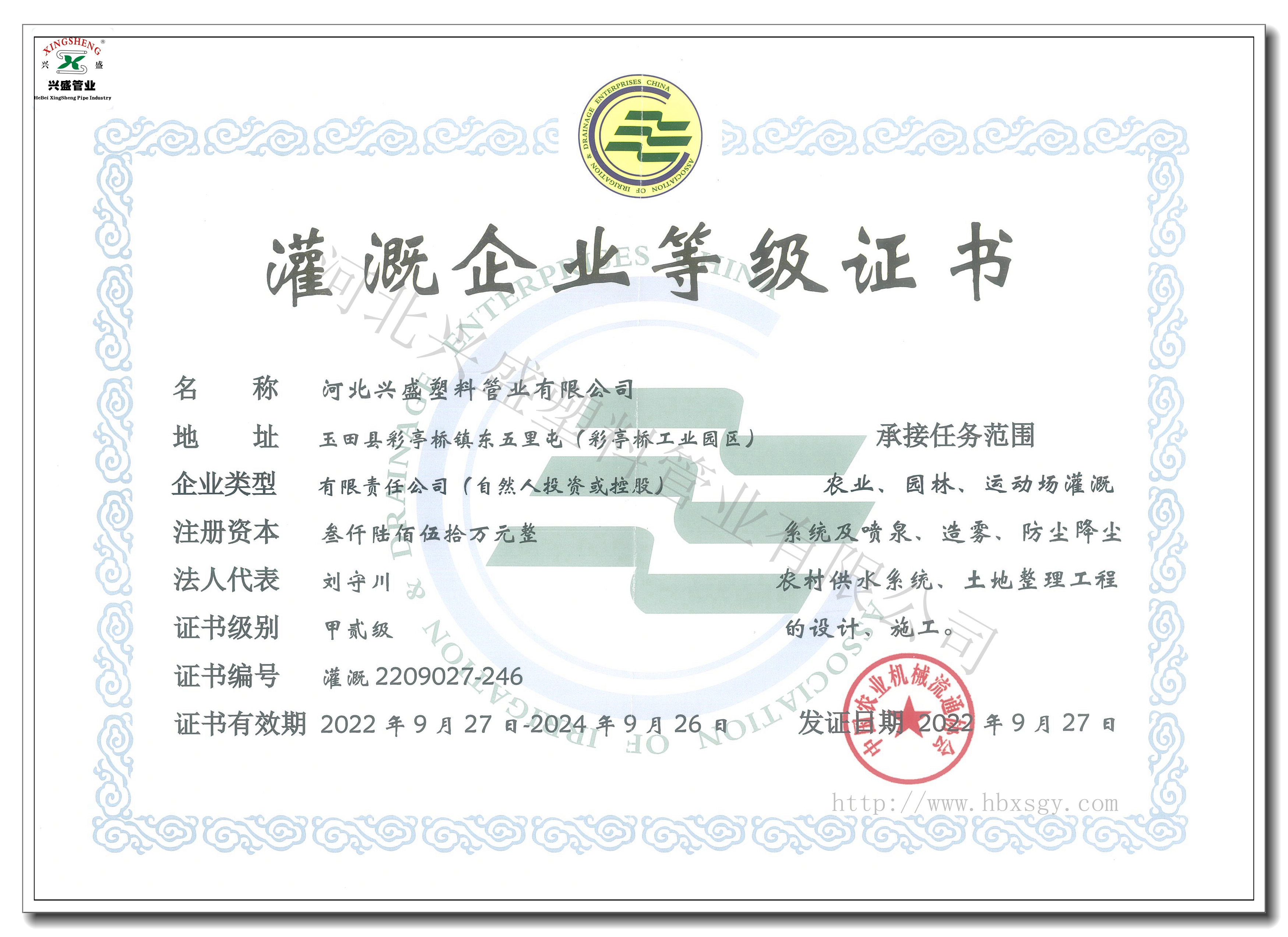 河北興盛塑料管業(yè)有限公司,始建于1981年,至今已有四十多年的發(fā)展歷程,致力于人畜飲水、節(jié)水灌溉等管道系列產(chǎn)品的研發(fā)、生產(chǎn)、銷售、設(shè)計(jì)安裝于一體的綜合型現(xiàn)代化企業(yè).....